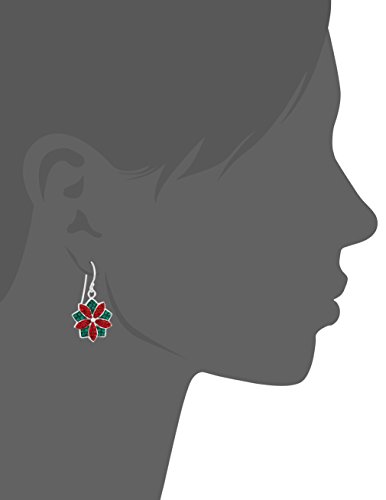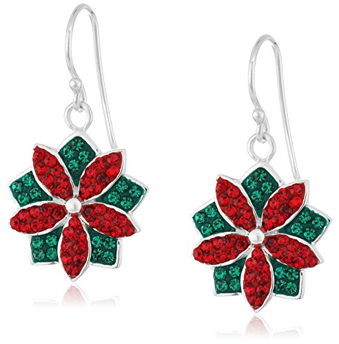 Silver Plated Crystal Red Pointsettia Drop Earrings