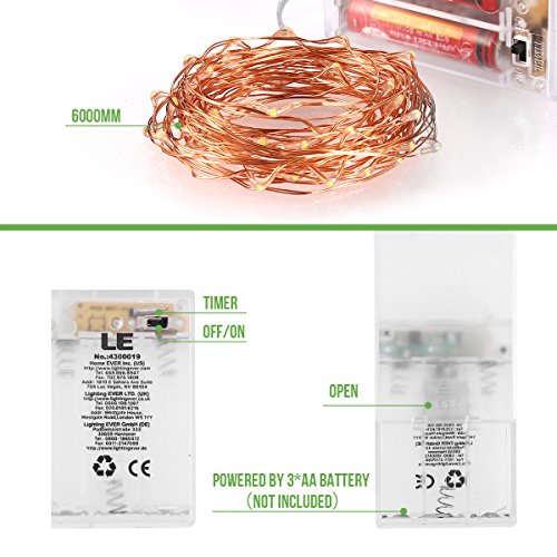-. Title : LE Copper Wire String Lights Warm White Waterproof Battery Powered Fairy Starry Lights for Garden Patio Party Valentine's Day Wedding Christmas Tree