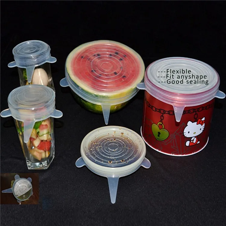 Silicone Stretch Lids Reusable Food Saver And Storage Cover Lids 6 Size Kitchen Tools