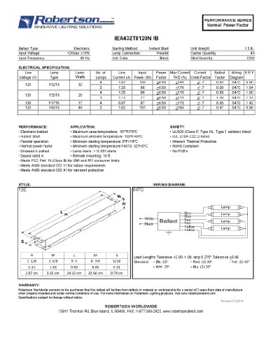 ROBERTSON 1P20135 IEA432T8120N /B OEM-Pak of 10 Fluorescent eBallasts for 4 F32T8 Linear Lamps, Instant Start, 120Vac, NPF, 60Hz, Normal Ballast Factor