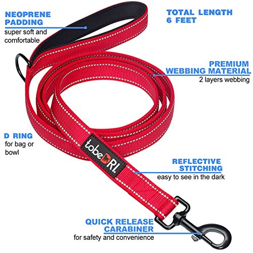 Studio : TOBEDRI LLC Publisher : TOBEDRI LLC Binding : Misc. Product Description tobeDRI padded dog leash is designed by those who frequently go outside with dogs for walks, hikes or obedience training, either in the park for holiday or go over the crowd street to the supermarket. It is durable and strong featured with a soft 3mm neoprene padded handle that helps protect your hand from leashburn. Let's focus on enjoying the time with your furry buddies! Furthermore, a free collapsible pet bowl is included in the package. Do you still feed your dog water by pouring from a bottle into your hand and let him/her drink? There is no need to do this with the bowl, which helps you feed your dog conveniently when you are outside. It can be clipped on the leash, pants loop or bag easily. Usability medium dogs / large dogs / some strong small dogs Dimensions Webbing width: 1 inch Webbing length: 6 feet