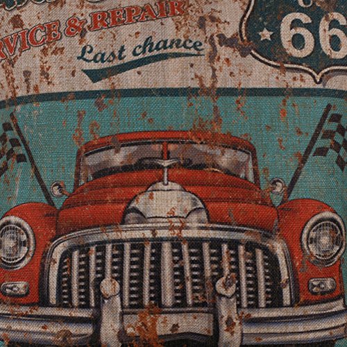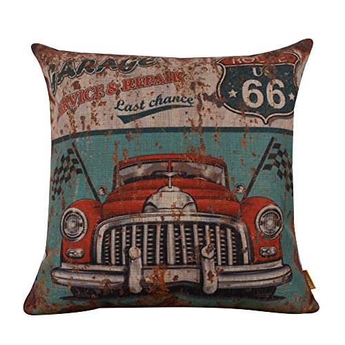 LINKWELL 18"x18" Metal Look Garage Full Service Old Car Burlap Cushion Covers Pillow Case