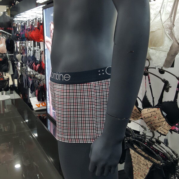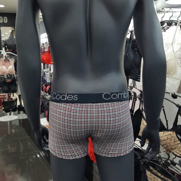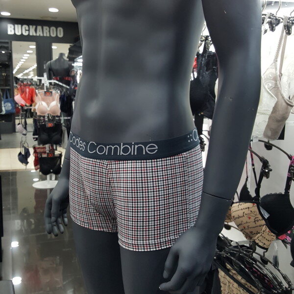 체크 바탕에 브랜드 로고 아웃밴드로 포인트 된 남성 드로즈입니다. 편안한 착용감을 주는 제품입니다.