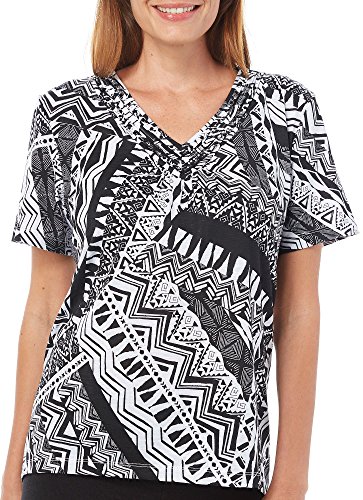 Studio : Alfred Dunner Publisher : Alfred Dunner Binding : Apparel Product Description Alfred Dunner offers comfortable, easy-to-wear, and classic style. This short sleeve top features a mixed print and beaded V-neckline. Partof the Weekend Oasis collection. Top length is approximately 26 inches, measured from size medium. Polyester/Spandex. 0