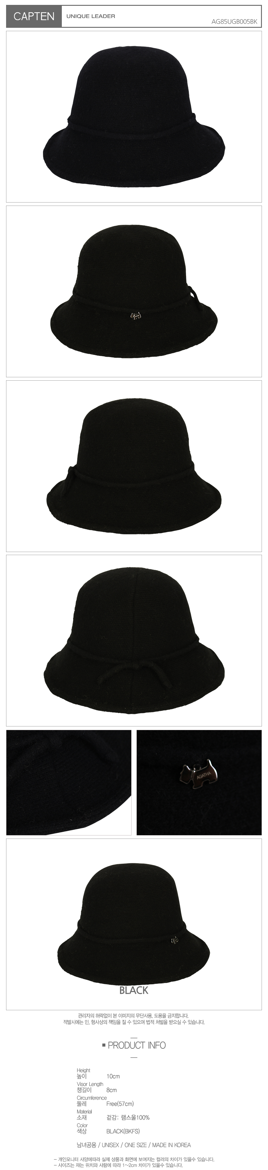 사이즈높이: 10cm, 챙길이: 8cm, 둘레: Free(57cm)