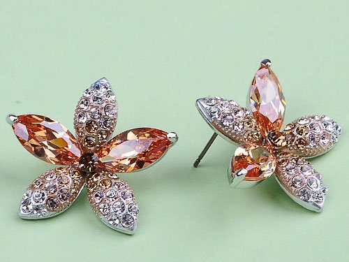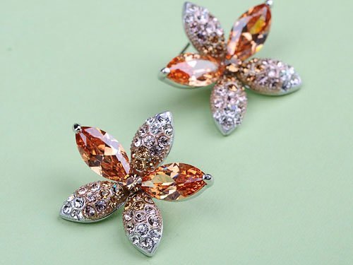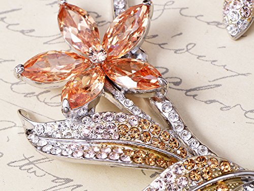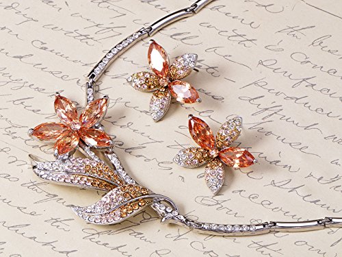 Fall in love with Autumn. This is a beautiful necklace made from fine Swarovski crystal rhinestones. This was meticulously handmade. Made from a high quality shiny silver metal alloy, this is a timeless and classy gift bound to please that someone special. Earrings measure an inch long with stud piercing backs.Feature