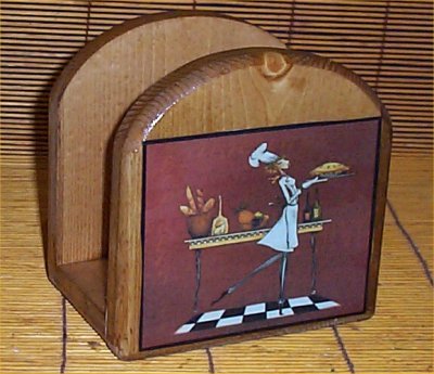 -. Brand : Handcrafted -. Color : Golden Oak + Multi -. Feature : Wood Napkin Holder / Fat Chef Napkin Holder / Lady Chef Kitchen / Chef / Napkin Holder -. Label : Houseandcraft -. Manufacturer : Houseandcraft -. ProductGroup : Kitchen -. ProductTypeName : KITCHEN -. Publisher : Houseandcraft -. Studio : Houseandcraft -. Title : Fat Chef Lady Wood Napkin Holder Bistro Home Decor New