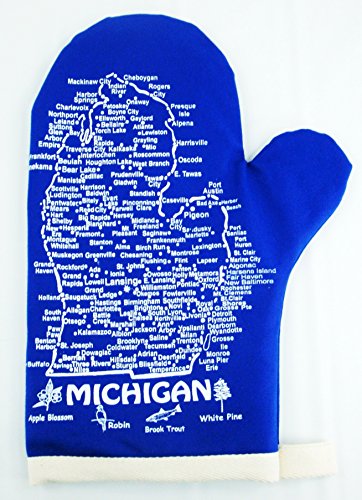 Michigan Oven Mitt-Upper & Lower Peninsula Map-Blue-Qty-1