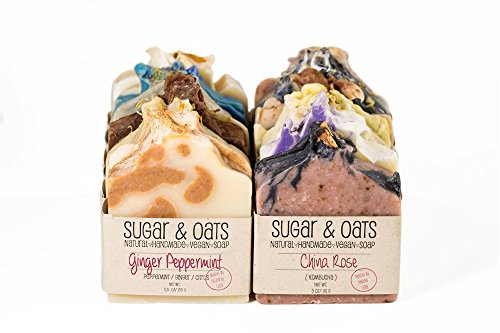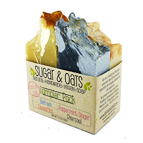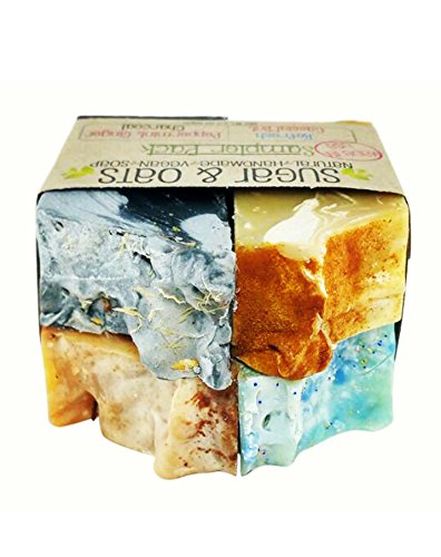 Sugar and Oats - Vegan Soap Gift Set (4 PACK SAMPLER) Cruelty Free Palm Free Bar Soap, Natural Face Body Gift Set (Essential Oils Lavender Tea Tree Sage,...