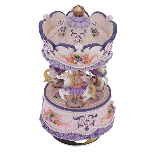 Andoer Laxury Windup 3-horse Carousel Music Box Creative Artware/Gift Melody Castle in the Sky Pink/Purple/Blue/Gold Shade for Option