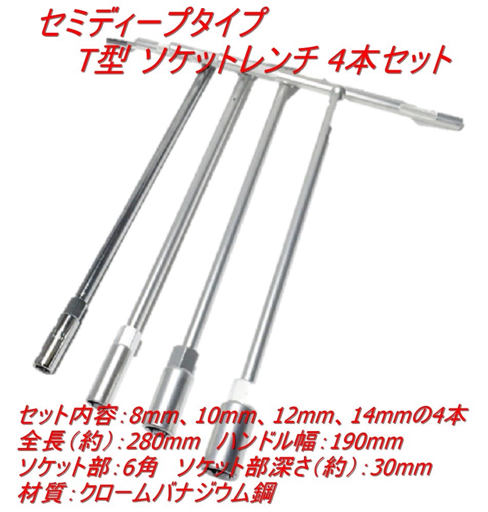 Semi-deep type T type socket wrench 4 pieces