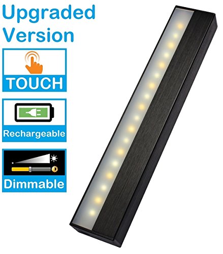 RTSU Touch Control Dimmable USB Rechargeable Wireless Strip Table Lamp - Metal Portable Magnetic Stick-on Anywhere Book Reading Light LED Desk Lamp - Closet Under Cabinet Counter Push Tap Touch Light