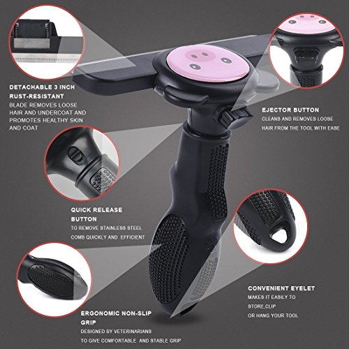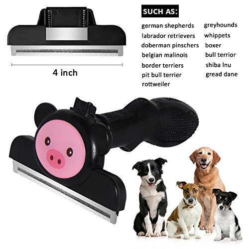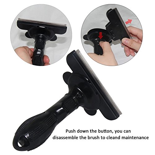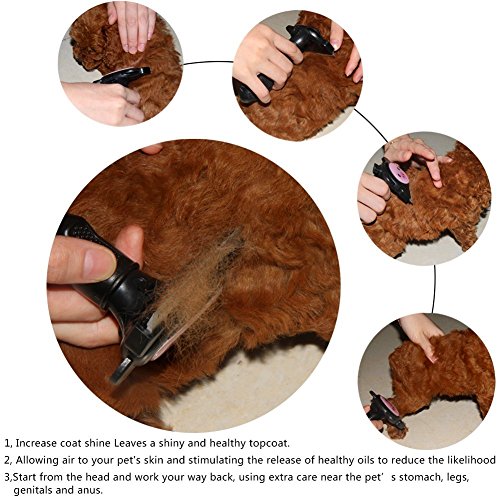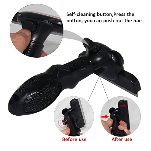 - Grooming is Proven to be healthy for dogs & cats. Daily grooming using our deshedding tool will allow you to see skin problems early on. Walking around with that excess hair can be stressful for your pets..it also helps to get at itches and other discomforts that your cat or dog may not be able to reach. - Grooming will keep your cat's or dog's coat shiny and smooth. Our deshedding tool will help to reduce allergies that can be caused by loose animal hair. Increases bonding - Animals groom each other to improve social bonding. The same is true when you groom your dog or cat. The bond between you and your pet increases. In cats, regular grooming will also decrease the frequency of hairballs (cat vomiting). This is because your cat won't have to self-groom as much. -Grooming Using Our Tool Will Save You Money! By reducing the amount of loose hair, you will have less damage to your furniture, clothes, carpet etc. You will save on professional grooming fees! - You & Your Pet Will be Super Comfortable! Our dog & cat hair brush is designed to snugly fit into your hand..You will love how easy it is to use! Your Pet Will Love it..It has been designed to be as comfortable as possible on your pet's coat. - 30-Day Money Back If you are not happy within 30 days we will refund or replace the product. DISCLAIMER - This brush should not be used on cats/dogs that do not shed fur.Feature