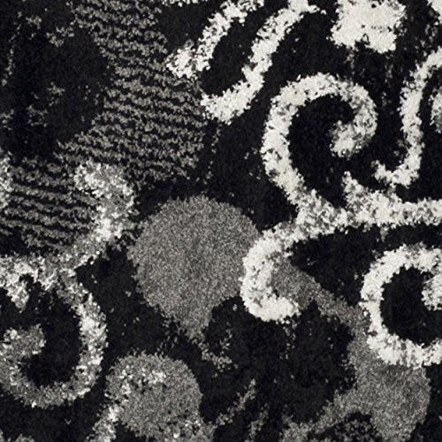 This rug has been power-loomed with high-quality polypropylene fiber, which ensures that it will be long-lasting and virtually non-shedding. Its shades of silver, black, ivory, and grey allow for a seamless integration into any room’s color scheme. Place this rug in the bedroom, foyer, living room, bedroom, or kitchen to add warmth and stylish appeal to the area. Its low pile height allows for it to fit effortlessly beneath furniture, and its construction is designed to withstand high traffic areas of your home.