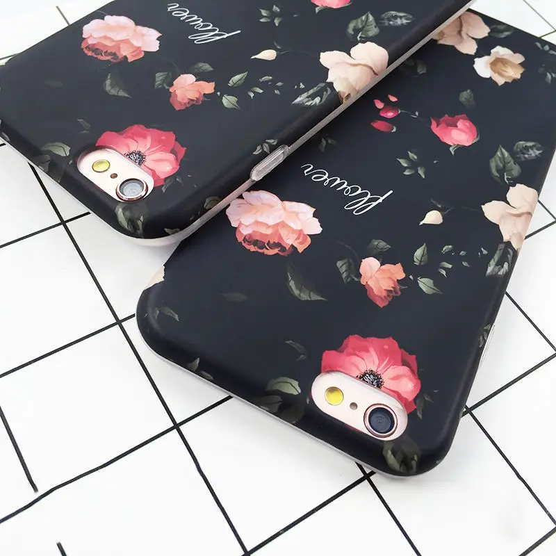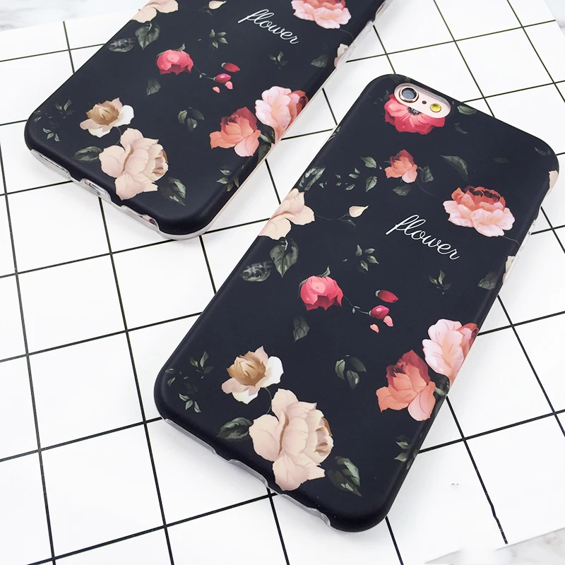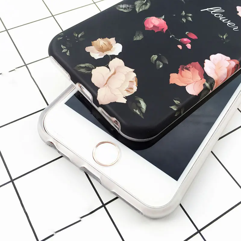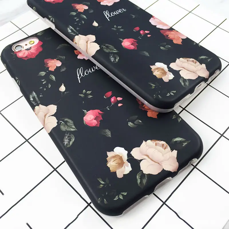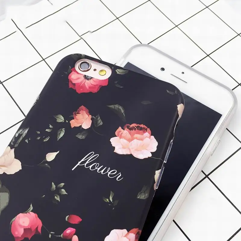Feature:Classical Retro Flowers Black Soft IMD Phone Back Cover