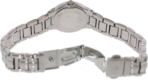 -. Binding : Watch -. Brand : Bulova -. Color : Mother of Pearl -. Department : womens -. EAN : 0042429501966 -. Feature : Round watch in stainless steel with rose-gold tone dial, crystal-embellished bezel, and Bulova logo at 12 o'clock / Japanese-quartz movement with analog display / Protective mineral crystal dial window / Features foldover clasp with double push-button safety closure / Water resistant to 99 feet (30 M): withstands rain and splashes of water, but not showering or submersion -. Label : Bulova -. Manufacturer : Bulova -. Model : 96R171 -. MPN : 96R171 -. PackageQuantity : 1 -. PartNumber : 96R171 -. ProductGroup : Watch -. ProductTypeName : WATCH -. Publisher : Bulova -. ReleaseDate : 2013-07-05 -. Studio : Bulova -. Title : Bulova Women's 96R171 Diamond-Set Case Watch with Link Bracelet -. UPC : 042429501966