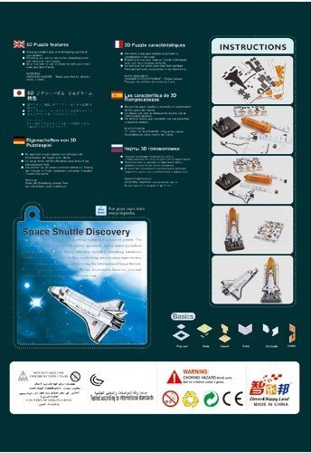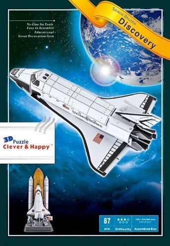 -. Binding : Toy -. Brand : Liberty Imports -. EAN : 0000649000140 -. Feature : Build an awesome 3D replica of the Space Shuttle Discovery / Engaging, challenging and fun 3D Puzzle / Includes 87 pieces, base, and instructions / No Scissors or Glue Required / High quality, authentic, makes a great souvenir -. Label : Liberty Imports -. Manufacturer : Liberty Imports -. MPN : ZF004 -. PackageQuantity : 1 -. PartNumber : ZF004 -. ProductGroup : Toy -. ProductTypeName : TOYS_AND_GAMES -. Publisher : Liberty Imports -. Studio : Liberty Imports -. Title : Space Shuttle Discovery 3D Puzzle, 87 Pieces -. UPC : 000649000140