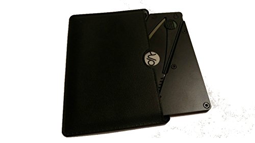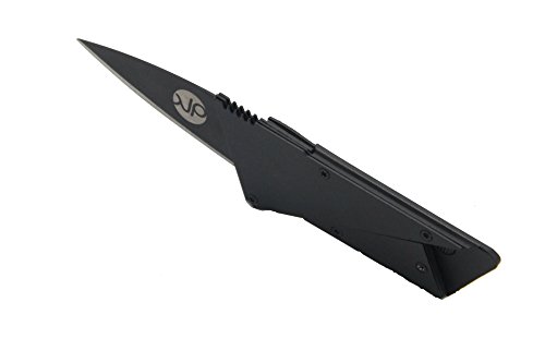 Multi Functional Metal Handle Credit Card Folding Knife Survival - Hunting Pocket Knife - Credit Card Shape Survival Tools Knife / Cutter - Letter Opener Knife - Stainless Steel Blade | Black | PU Bag