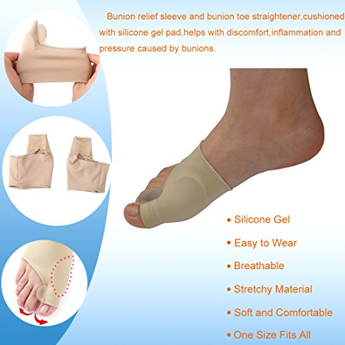 -High Quality Material.Our bunion relief sets are made of super stretchy material to accommodate almost foot sizes.Small light but useful for your feet and simple Elastic cloth fabric design, comfortable to wear, reusable and hand washable.