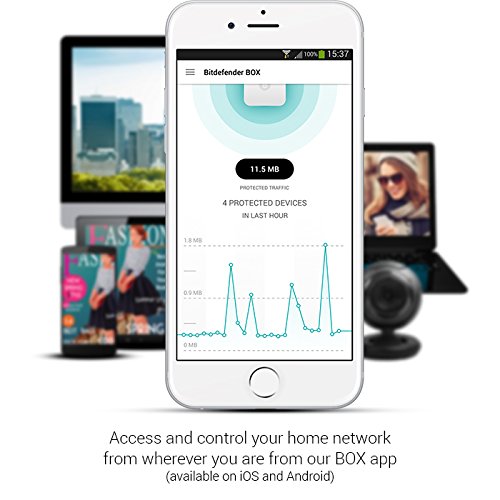 The Bitdefender BOX - Smart Security Hub Amazon Edition protects all of your devices connected to the Internet, including your home computers. It simply plugs into your router to secure smart phones and tablets, smart TVs and all your other home appliances and gadgets, like Wi-Fi thermostats, gaming consoles, laptops, and even your baby monitor.