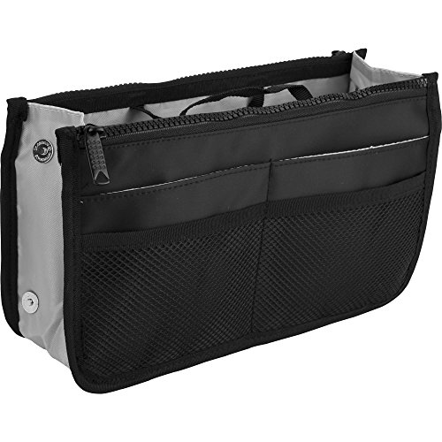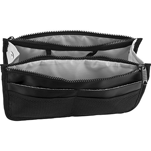 Casemetic PC05 Mini Travel Makeup Bag Purse Organizer with 2 Zippered Closure Pouches and 8 External Pockets, Black Nylon