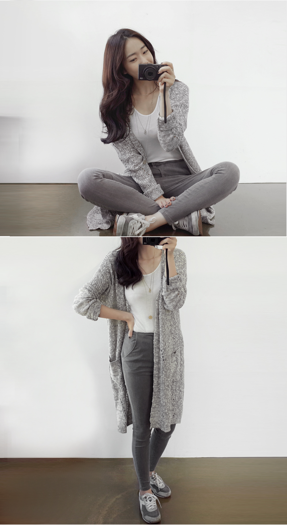 롱~한길이감에 단추여밈이따로 없는 오픈형 숄가디건이구요.