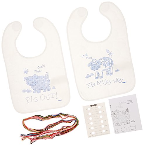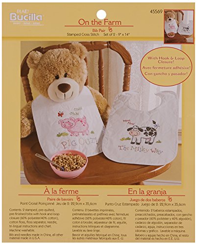 -. Binding : Kitchen -. Brand : Bucilla -. Color : white -. Department : baby-boys -. EAN : 0683203191296 -. Feature : Size: 9" x 14" / Design size: set of 2, hook & loop closure / Everything you will need is included in your kit / You can personalize for a one of a kind gift / Stitch a bright and cheery nursery with a design that catches the eye and the heart -. IsAutographed : 0 -. Label : Plaid Inc -. Manufacturer : Plaid Inc -. Model : 45569 -. MPN : 45569 -. NumberOfItems : 1 -. PackageQuantity : 1 -. PartNumber : 45569 -. ProductGroup : Art and Craft Supply -. ProductTypeName : HOME -. Publisher : Plaid Inc -. Size : 9 x 14" -. Studio : Plaid Inc -. Title : Bucilla Stamped Cross Stitch Bib Pair Kit, 9 by 14-Inch, 45569 On The Farm (Set of 2) -. UPC : 046109455693