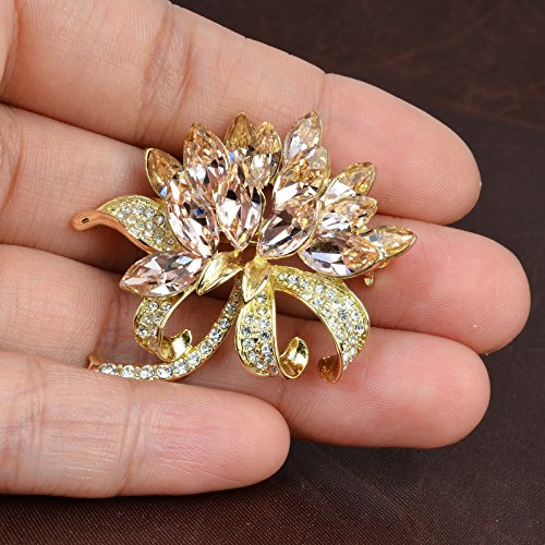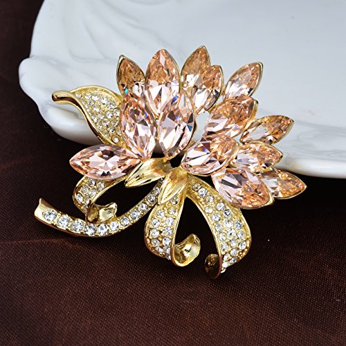 -. Title : OBONNIE Elegant Austrian Crystal CZ Lotus Tulips Flower Bride Wedding Party Boutonniere Lapel Brooch Pin