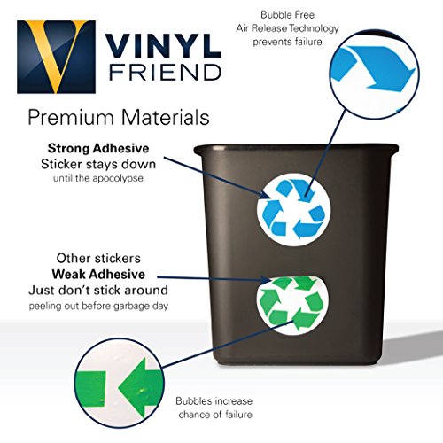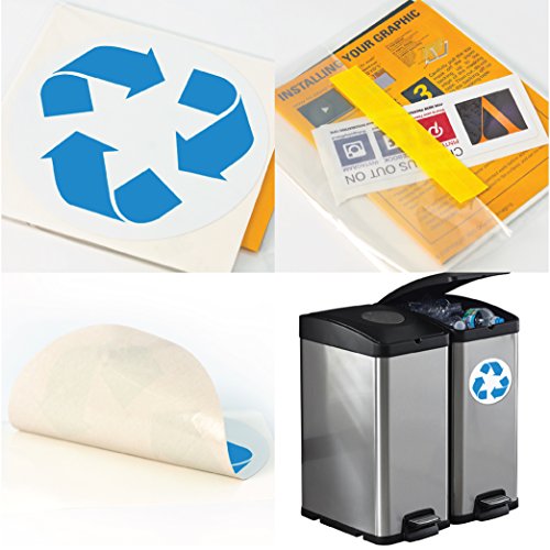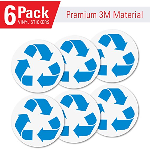 Recycle logo sticker 6 Pack (5in x 5in BLUE) to organize your trash - For trash cans, garbage containers and recycle bins - Premium Vinyl decal