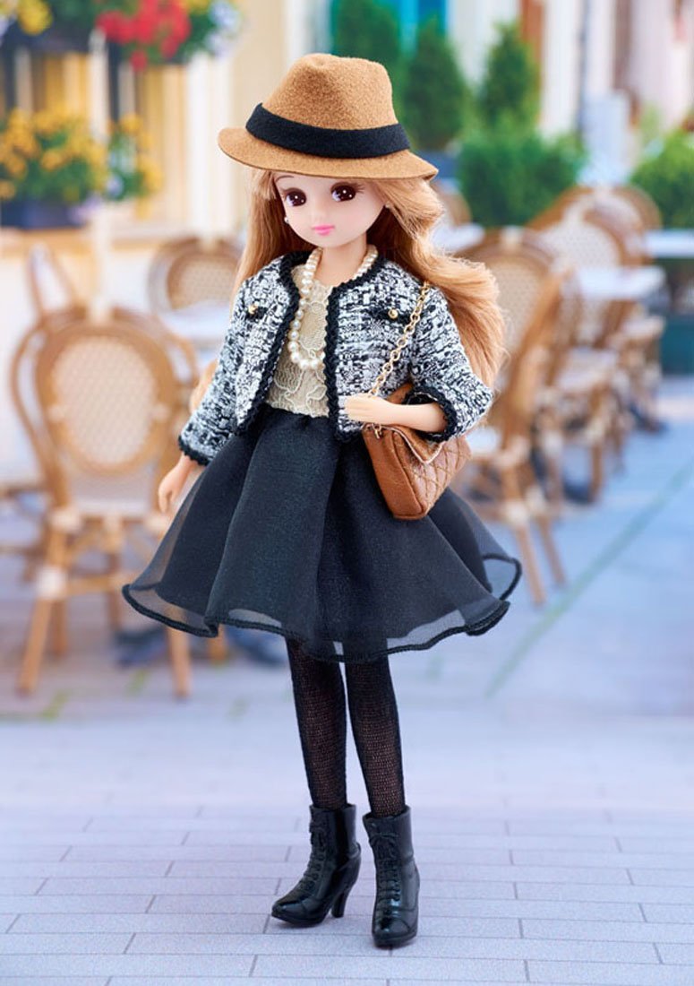Licca-chan (1), a hat (1), a shoulder bag (1), a necklace (1), a lace-up boots (1), a stand (1), a jacket (1)