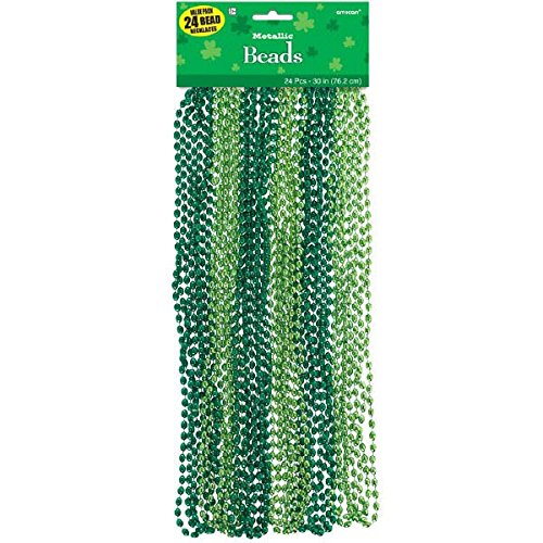 Wee willy St. Patrick's Day Party Metallic Bead Necklaces , Green, Plastic , 34", Pack of 24