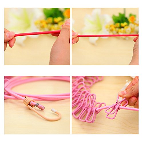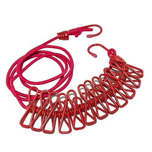 BINGONE Portable Travel Home Style Outdoor Windproof Clothesline with 12 pcs Clip Red