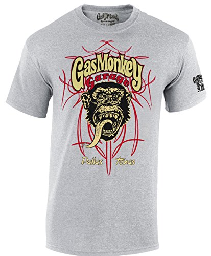 -. Feature : Original Gas Monkey Garage T-Shirt aus der FAST N' LOUD TV-Serie / Sehr angenehm auf der Haut zu tragen, dank weicher Baumwolle / Passform: Standard Fit / Farbe: Grau / 100% Baumwolle