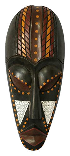 NOVICA Decorative Large Sese Wood and Aluminum Mask, Brown, 'Successful'