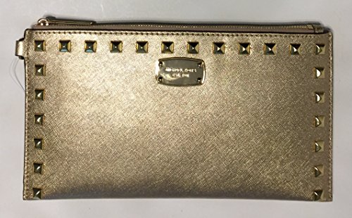 -. Brand : Michael Kors -. Color : Optic White -. Department : womens -. Feature : Michael Kors Saffiano Stud LG Zip Clutch / New Style just released in 2016, with rounded front plate and a wrist strap / Wrapped in beautiful leather with polished gold or silver tone hardware / gold/silver tone pyramid studs / Measures approximately 10" (L) x 5" (H) x 1" (W). -. Model : 35S6GFSW1L -. PackageQuantity : 5 -. ProductGroup : Shoes -. ProductTypeName : HANDBAG -. Title : Michael Kors Saffiano Stud LG Zip Clutch