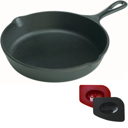 -. Binding : Kitchen -. Brand : Lodge -. Color : black -. EAN : 0029441070960 -. Feature : Cast Iron with polycarbonate red and black pan scrapers / Pre-seasoned / 2 pour spouts / Long handle for added convenience / Scrapers have differently shaped corners to help clean pans of all shapes and sizes -. Label : Lodge -. Manufacturer : Lodge -. MPN : 568568-L5SK3 -. PackageQuantity : 3 -. PartNumber : 568568-L5SK3 -. ProductGroup : Kitchen -. ProductTypeName : HOME -. Publisher : Lodge -. Studio : Lodge -. Title : Lodge Logic 8 Inch Cast Iron Skillet with 2 Free Polycarbonate Pan Scrapers -. UPC : 029441070960