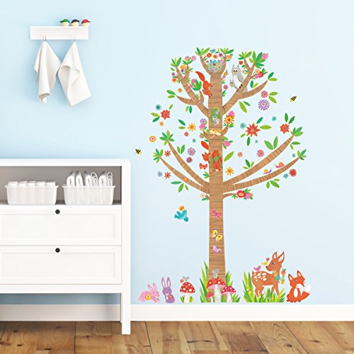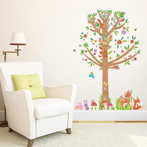 -. Title : Decowall,DM-1603,Large Tree and Animals in Woodland peel & stick Nursery wall decals stickers