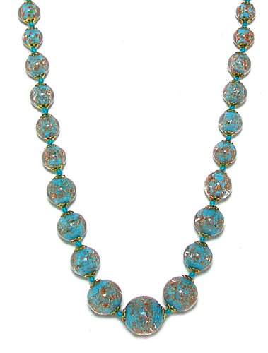 This necklace is stunning! The turquoise beads are of the highest quality from Murano, Italy. A beautiful necklace that any women would love to have in her collection. Matching bracelets available. The renown quality of Venetian beads begin with Effetre Glass canes and is combined with the skill and experience the bead makers of Venice and Murano to produce the most sought after and exceptional glass beads made anywhere. Aventurina is sparkling copper crystals seen in many of our beads, providing a richly toned look to most anything to which it is added. Mix the aventurina beads with some of our copper findings to create an luscious look.Feature