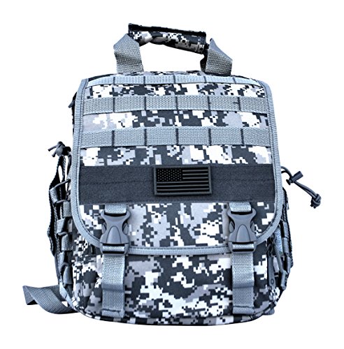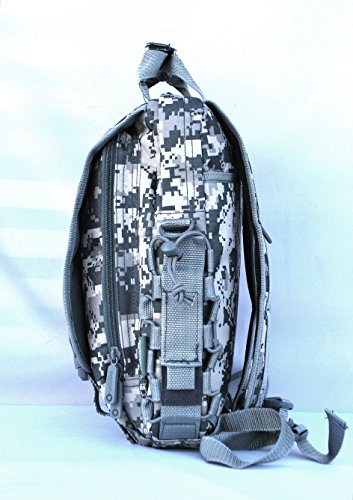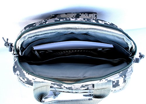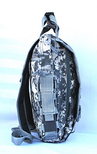 -. Binding : Sports -. Brand : East West U.S.A -. Feature : Dimensions: 13L x 4W x 14.5H in. / 1 main compartment with padded sleeve compartment / Front zippered pocket for organized storage / Hold tablets or laptops up to 13 in. / Choose from available options -. Label : East West USA -. Manufacturer : East West USA -. Model : RTC510-P -. MPN : RTC510 - ACU -. PackageQuantity : 1 -. PartNumber : RTC510 - ACU -. ProductGroup : Sports -. ProductTypeName : SPORTING_GOODS -. Publisher : East West USA -. Studio : East West USA -. Title : East West U.S.A RTC510 Tactical Molle Camouflage Laptop Sling Bag
