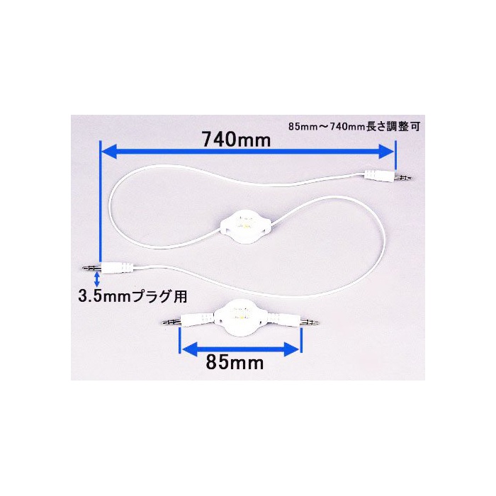 감아서 꺼내어 식스테레오 미니 플러그 케이블 부착 길이:약85mm~740mm 감아서 꺼내어 식에 콤팩트!운반에 최적!