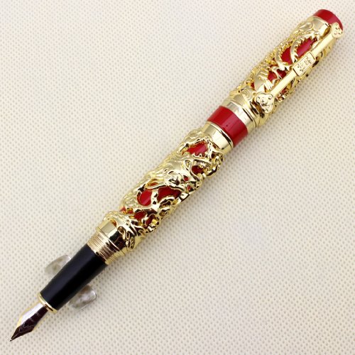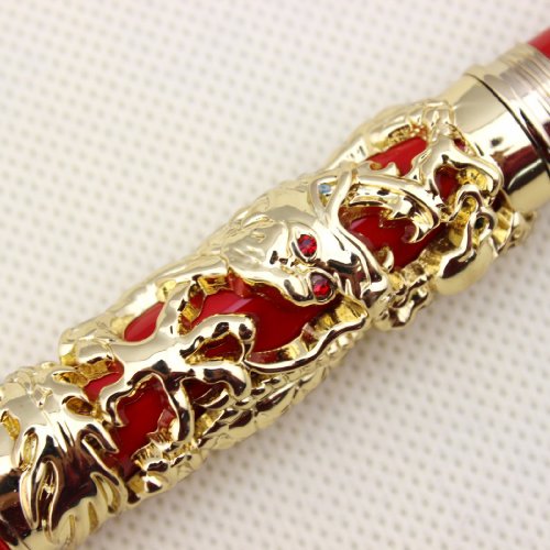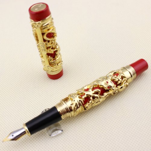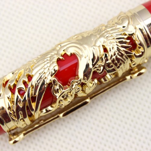 -. Title : Collectible Luxury Fountain Pen Dragon and Phoenix Red with Golden 18KGP Nib Medium
