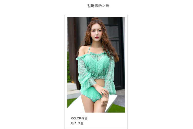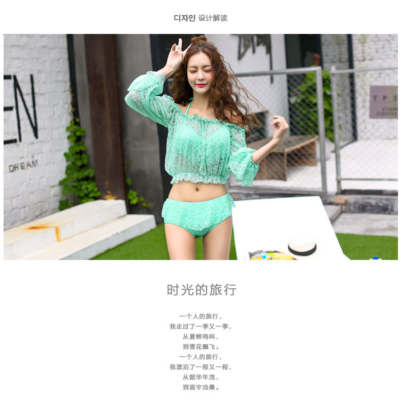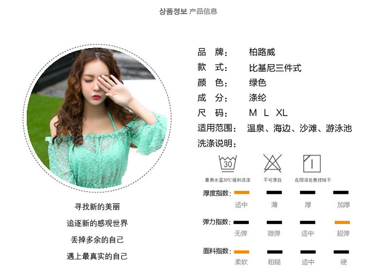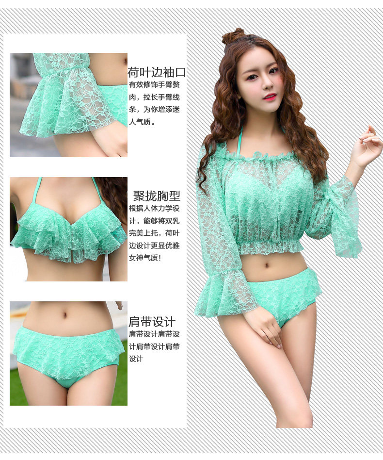 新款蕾丝性感比基尼三件套泳衣女钢托聚拢大胸小胸
