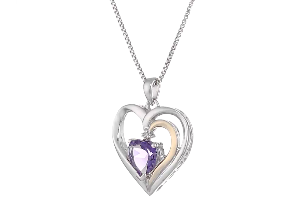 Sterling Silver and 14k Yellow Gold Amethyst and Diamond-Accent Heart Framed Pendant Necklace (.007 cttw, I-J Color, I2-I3 Clarity), 18"
