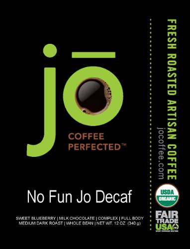 -. Title : NO FUN JO DECAF: 12 oz, Organic Decaf Coffee, Swiss Water Process, Fair Trade Certified, Medium Dark Roast, Whole Bean Arabica Coffee, USDA Certified Organic, NON-GMO