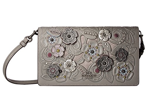 COACH Womens Foldover Crossbody Clutch With Metal Tea Rose Tooling