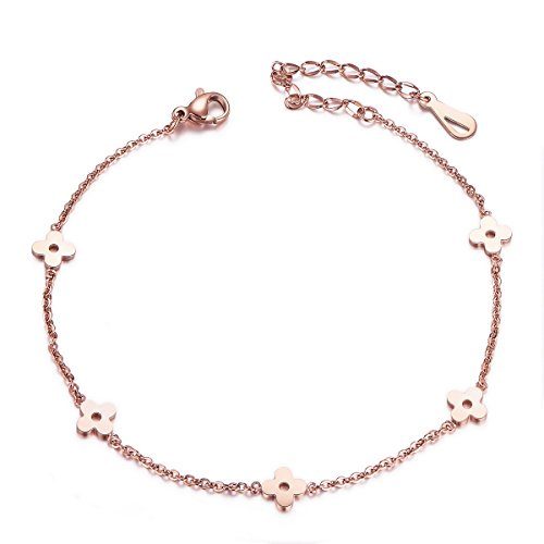 -. Title : SHEGRACE フラワーアンクレット 小花 チタン鋼 ピンクゴールド 足首飾り アジャスター付き アズキチェーン ジュエリー ビジュー レディース