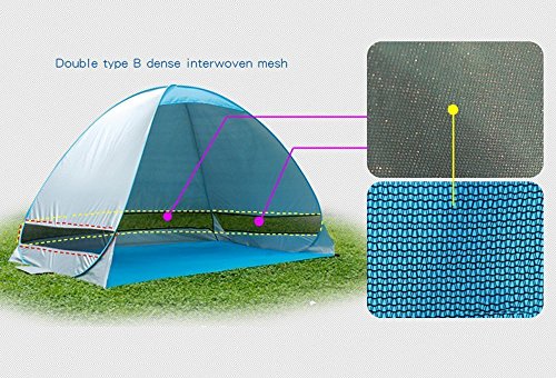 Double type B dense interwoven mesh, enhance ventilation, more upscale appearance. Wind comprehensive design for fixed, 2 built-in sand pockets and 4 fixed bands to keep the tent against strong wind.