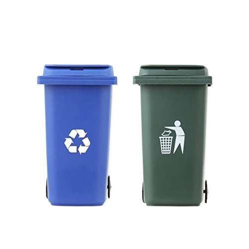 Chris.W 2Pack Office Supplies Mini Curbside Trash and Recycle Can Set Desktop Pencil/Pen/Scissors Holder/Cup/Organizer/Storage Bin (Blue/Dark Green)