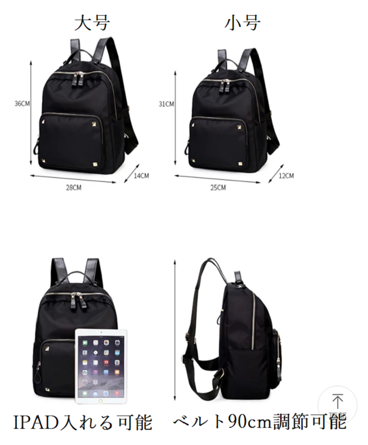 ナイロン スタッズ リュック 大容量 ブラック ゴールドスタッズ 黒