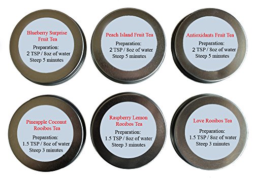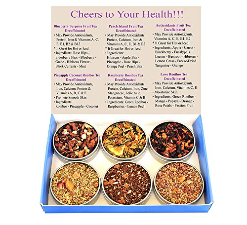-. Feature : Tea Sampler of Fruit Teas - Rooibos Teas / Premium Loose Leaf Tea Included - Blueberry Surprise Fruit Tea - Pineapple Coconut Rooibos Tea - Peach Island Fruit Tea - Raspberry Rooibos Tea - Love Rooibos Tea / Tea Gift Box - Find Your Favorite Teas / Great Variety Contains For Everyone To Share - Enjoy / Decaffeinated - Import from China